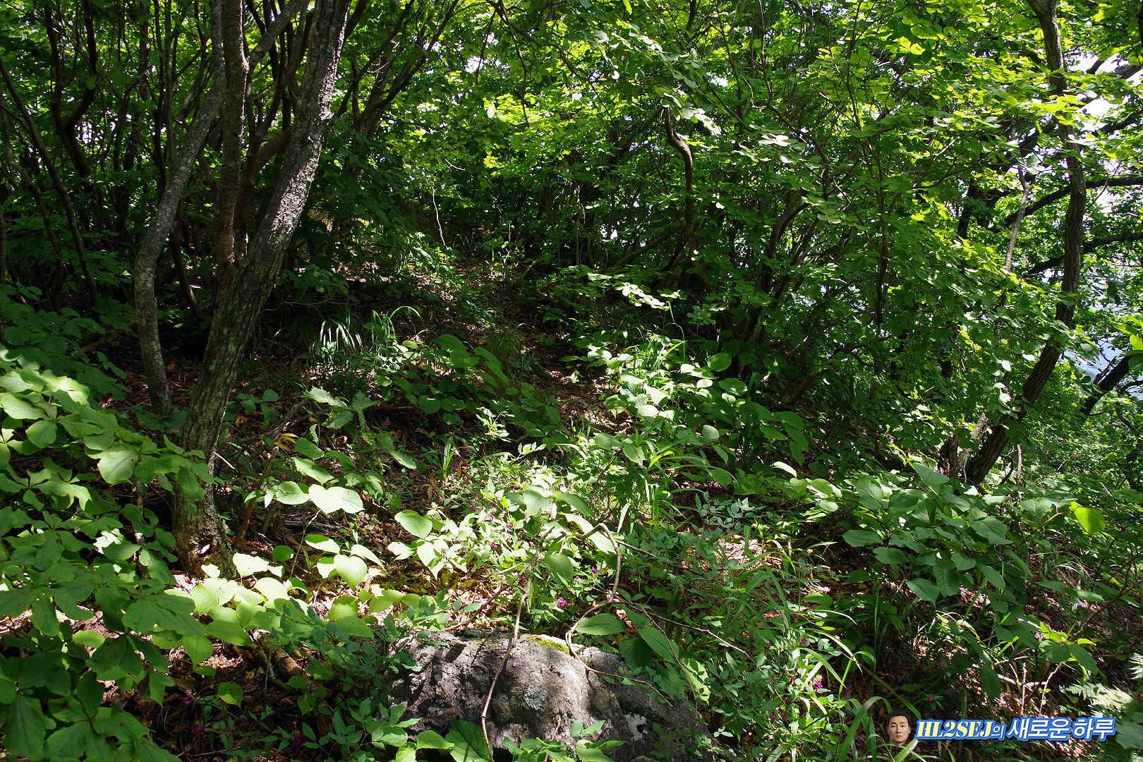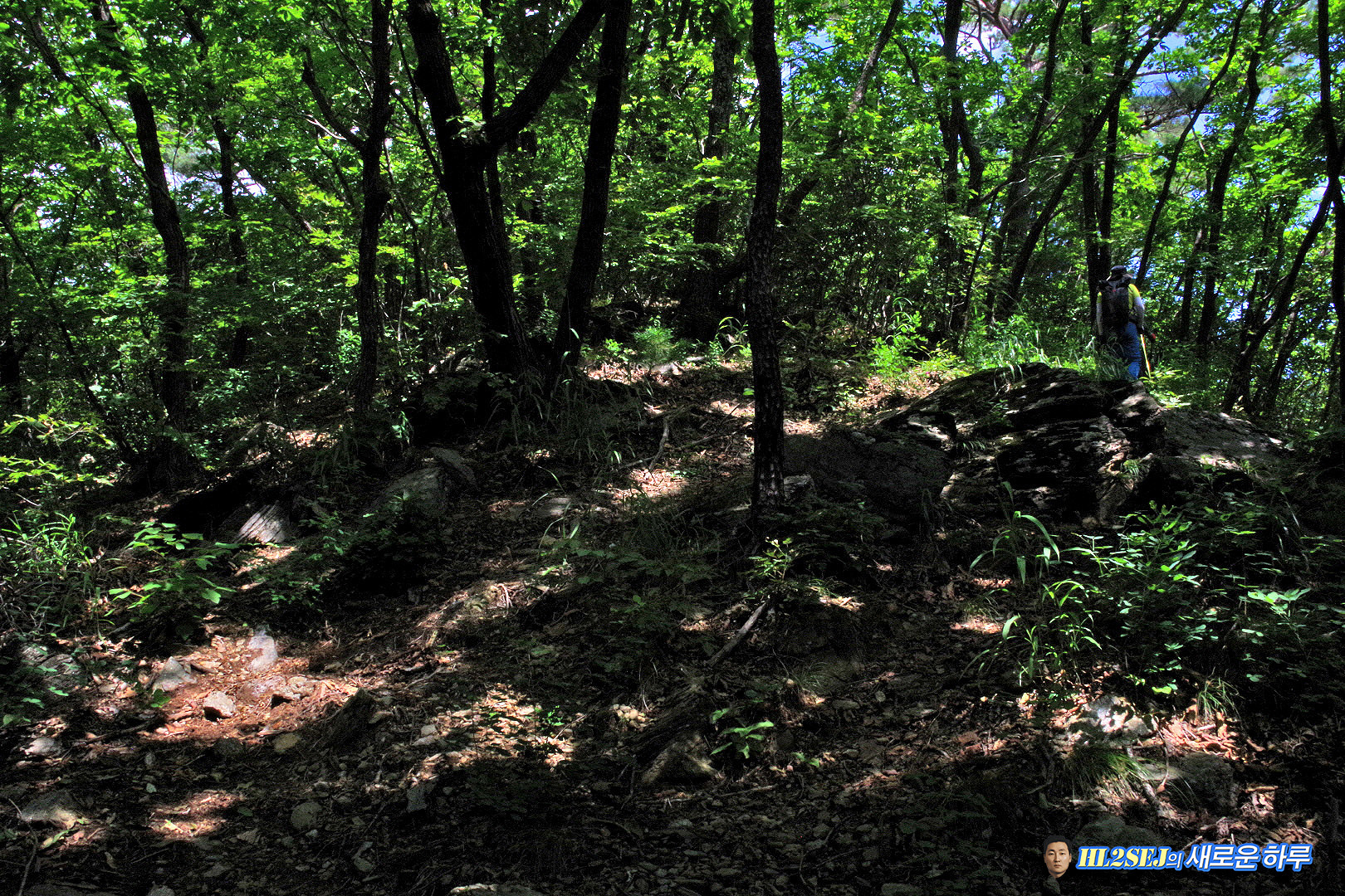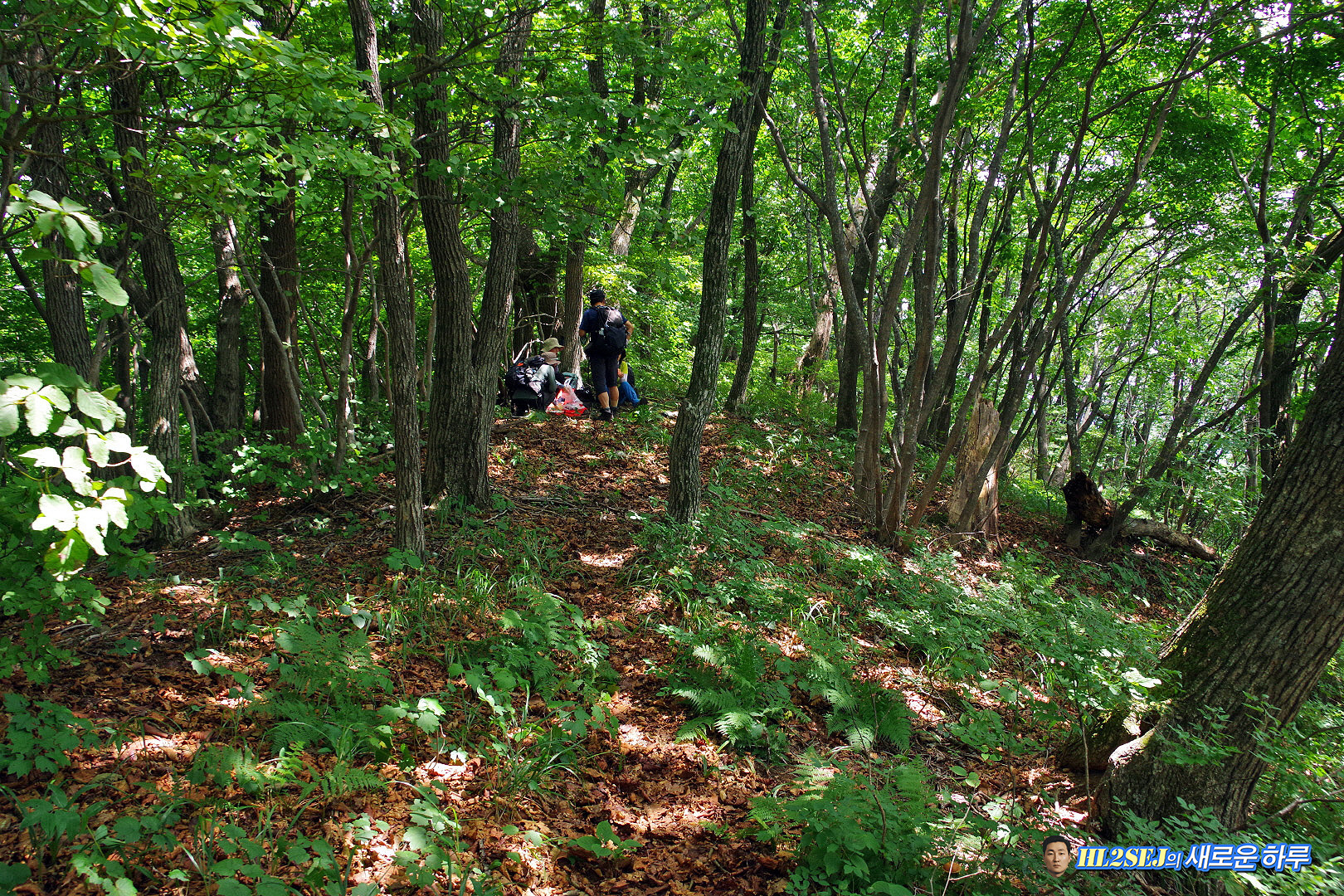오른쪽이 올라온 길, 후미 한 분이 올라오고 있다. ▼