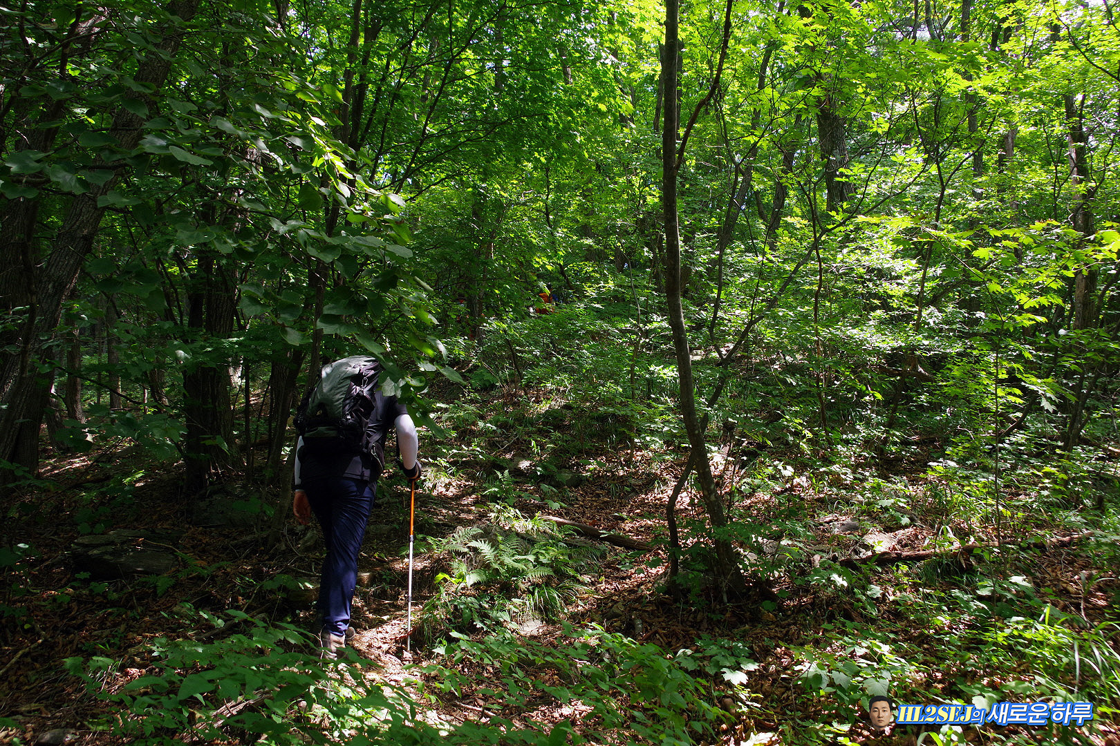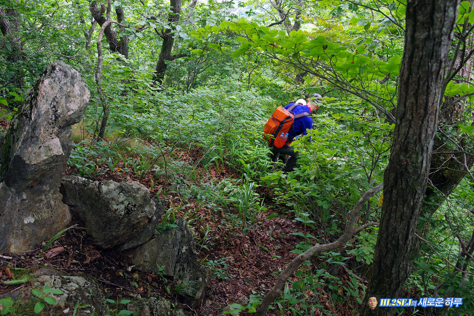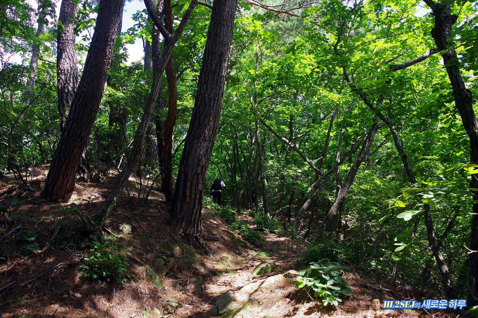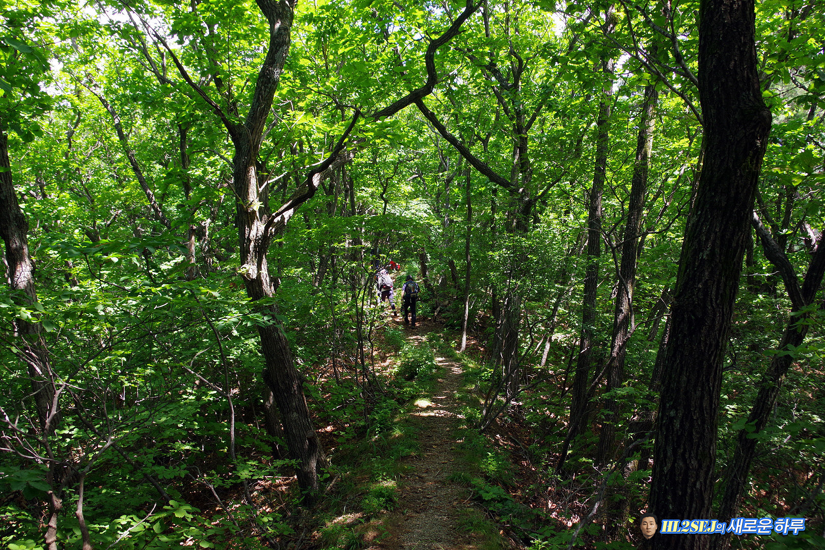 오른쪽이 올라온 길, 후미 한 분이 올라오고 있다. ▼