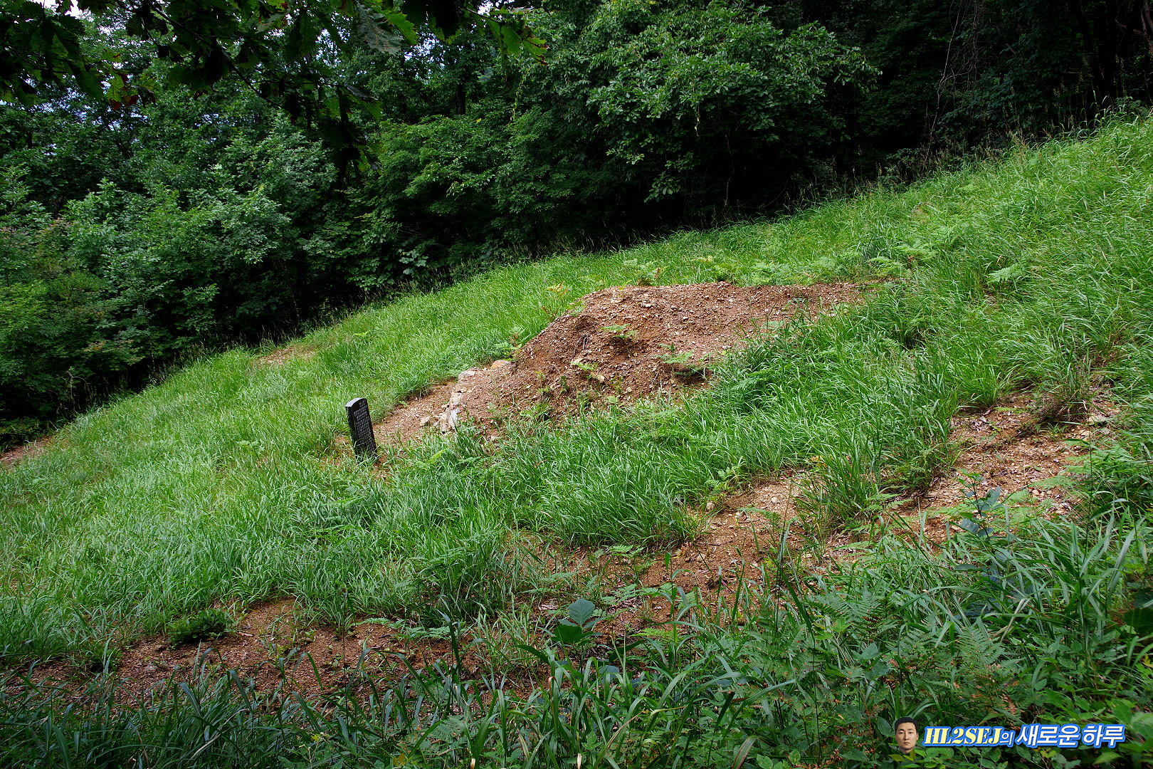 ▼ 8부능선 쯤에 난데없는 무덤이 나타난다.